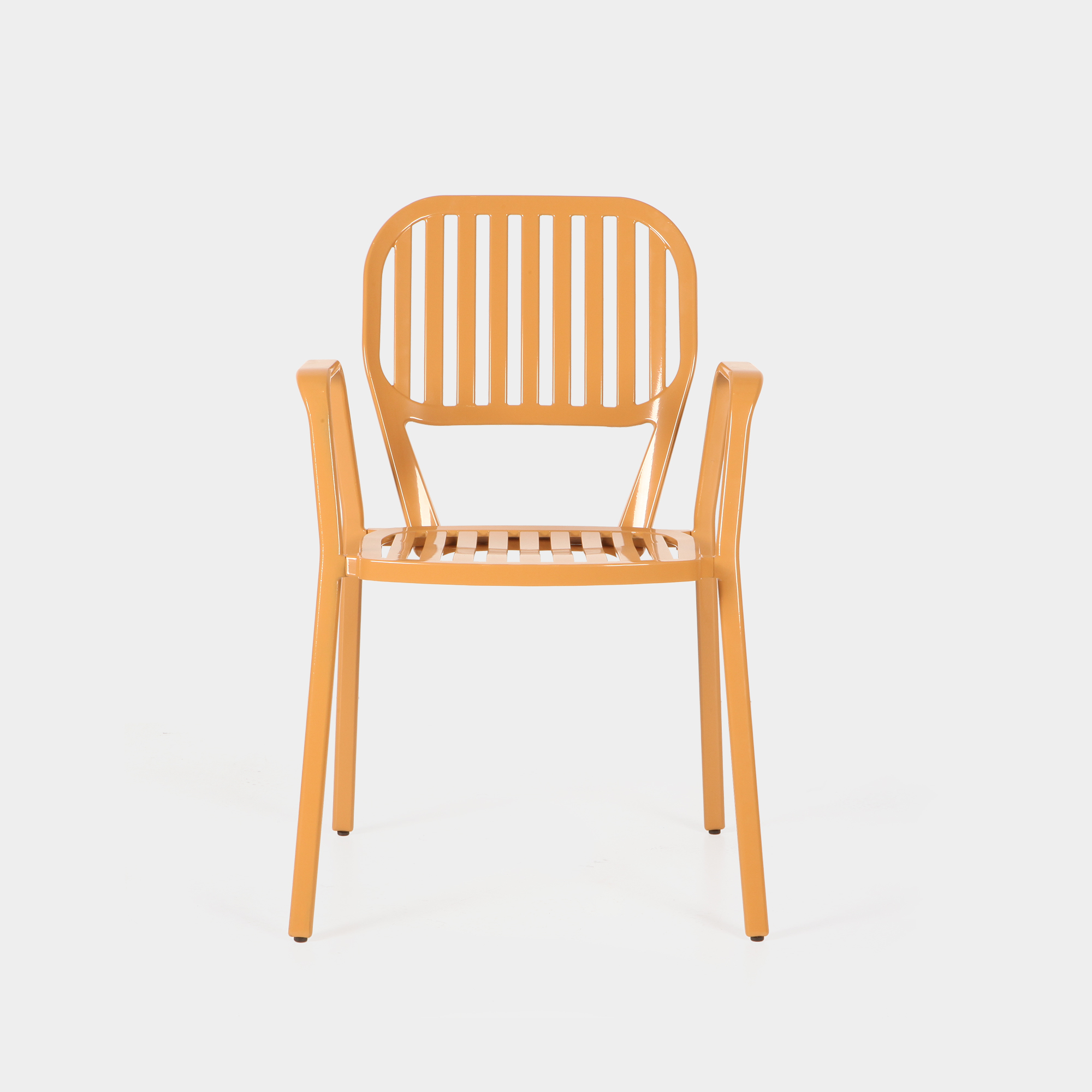 Aluminiowe krzesło zewnętrzne Izmir zachwyca połączeniem eleganckiego designu, solidnej konstrukcji i trwałej powłoki powierzchniowej.