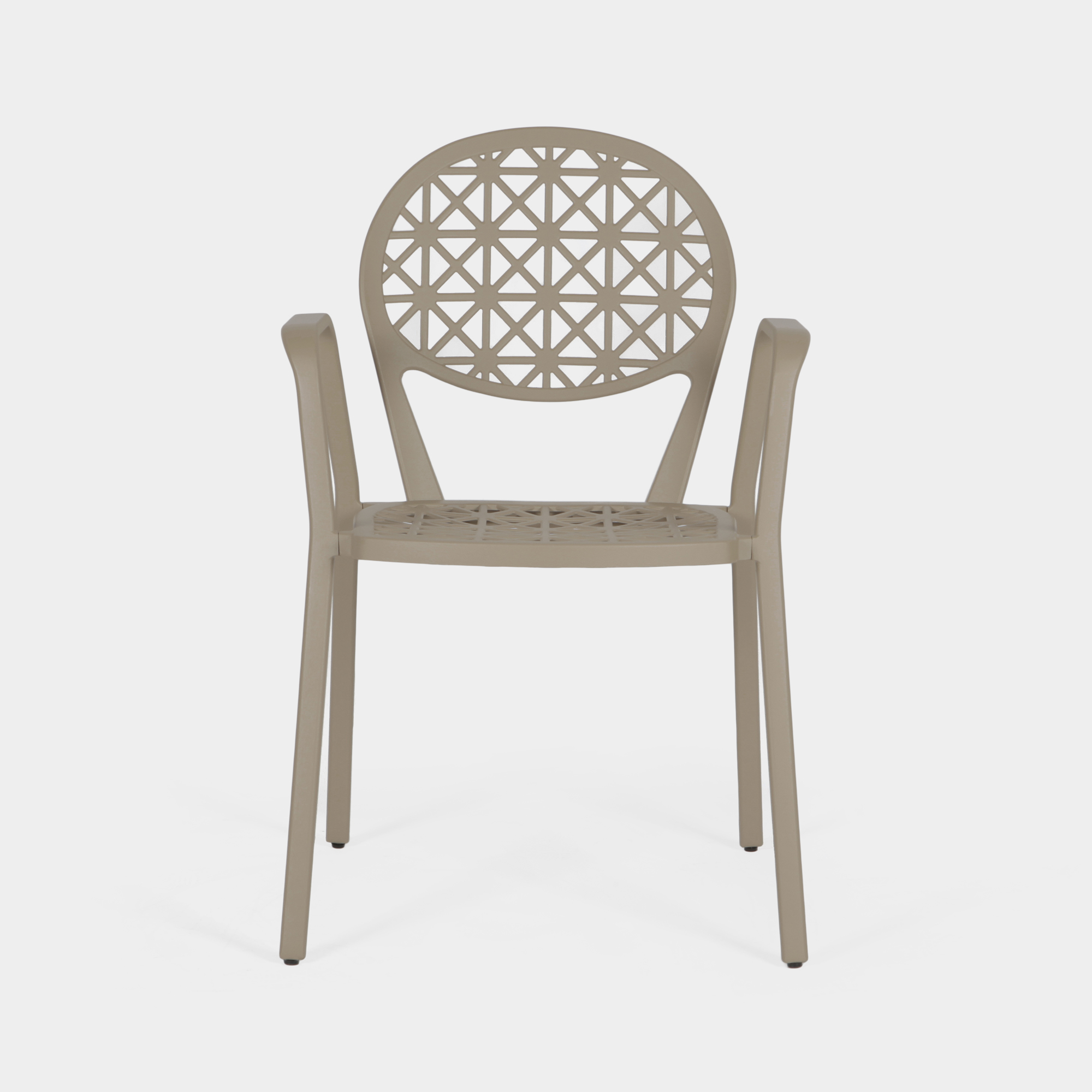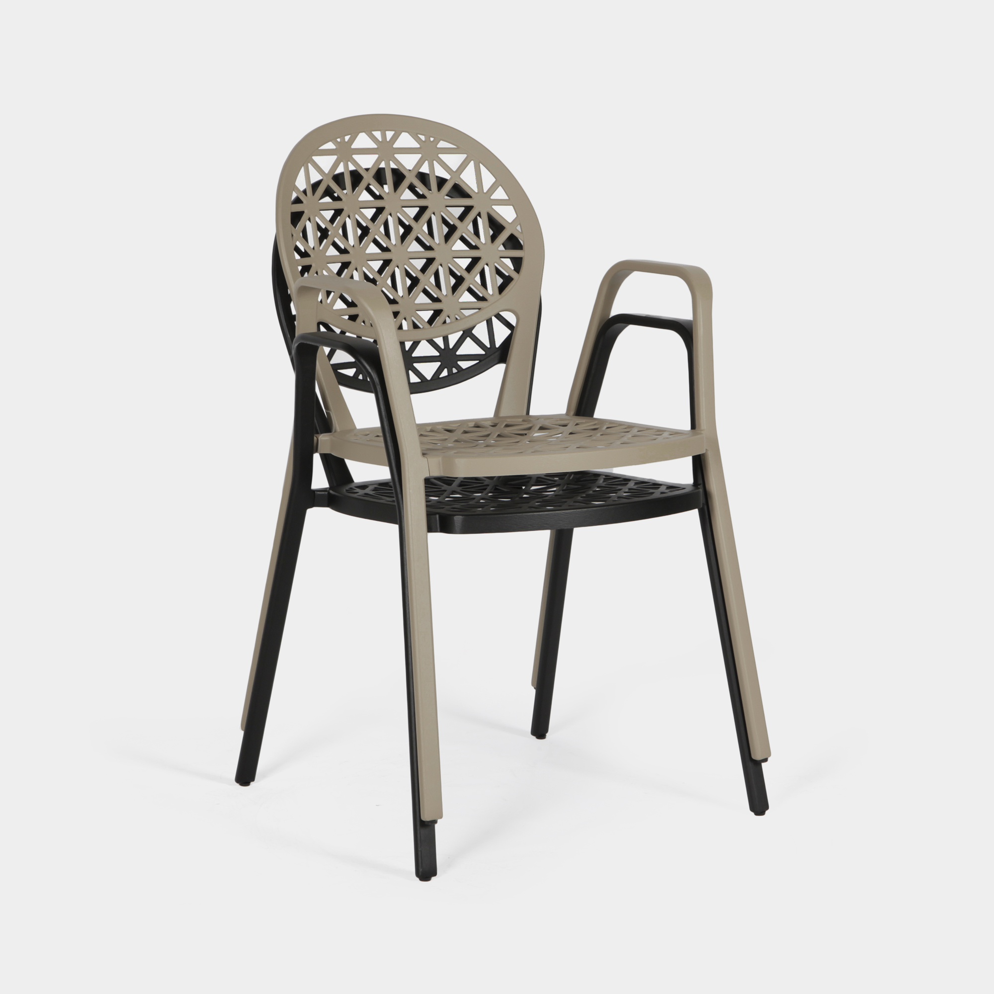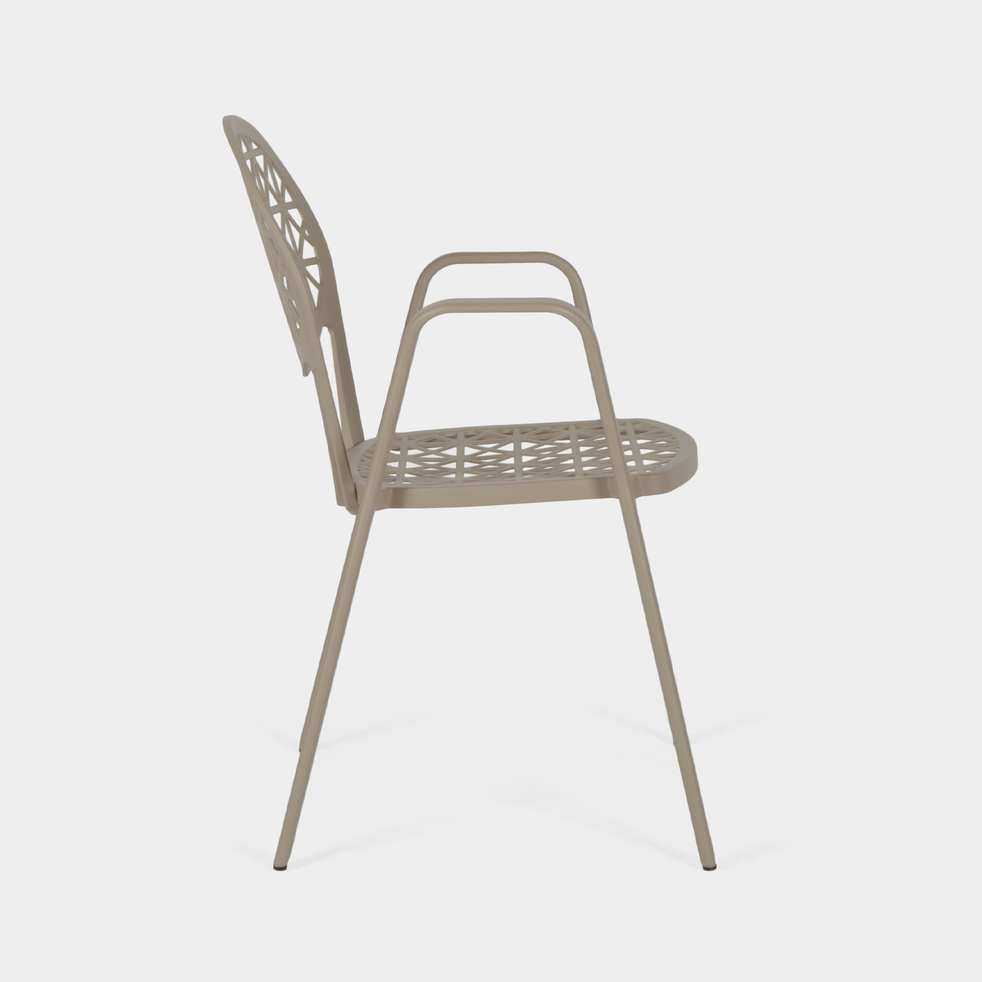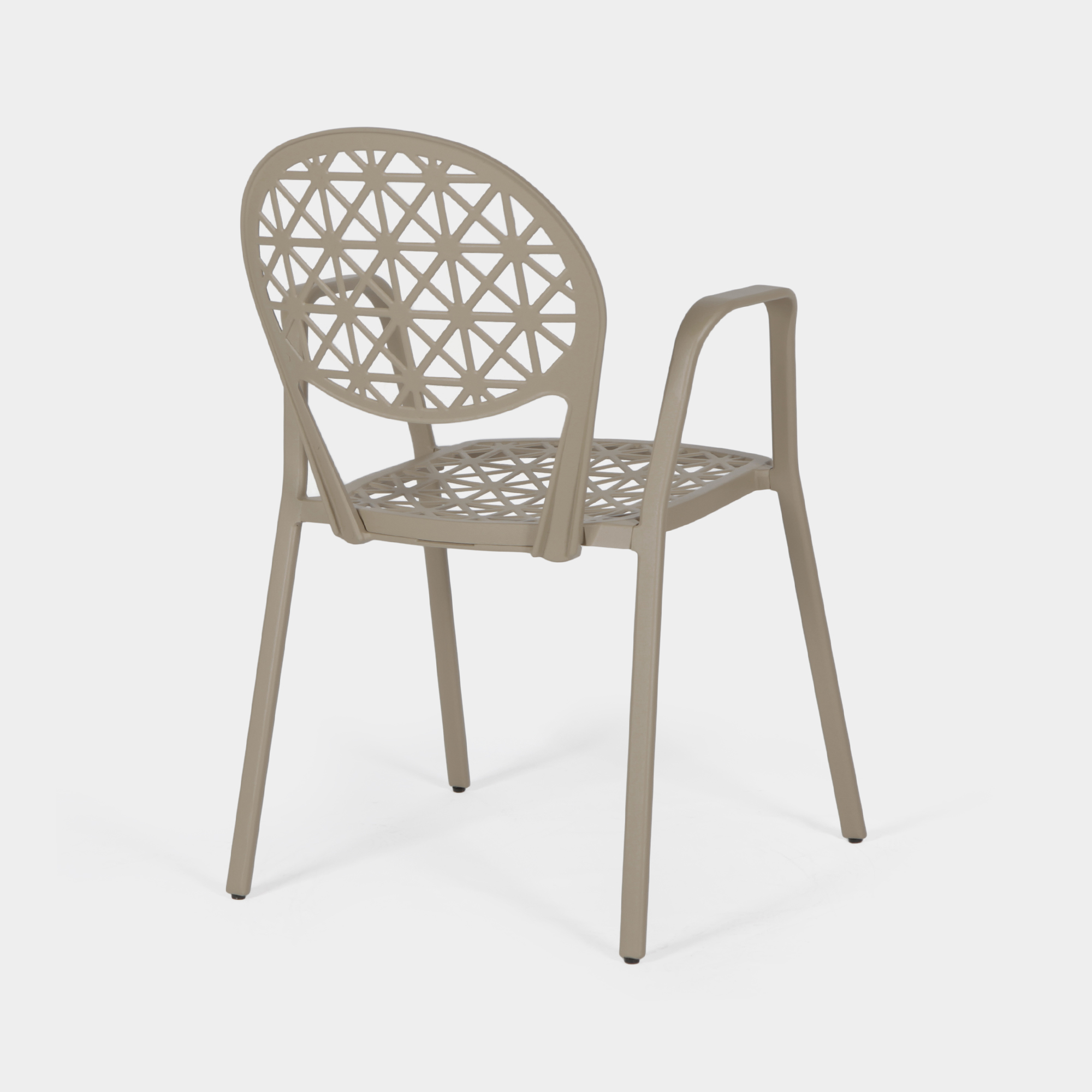 Wykonane z wysokiej jakości odlewanego ciśnieniowo aluminium i wykończone elektrostatyczną powłoką proszkową, krzesło zewnętrzne Izmir jest optymalnie chronione przed wpływami atmosferycznymi, promieniowaniem UV i korozją.
