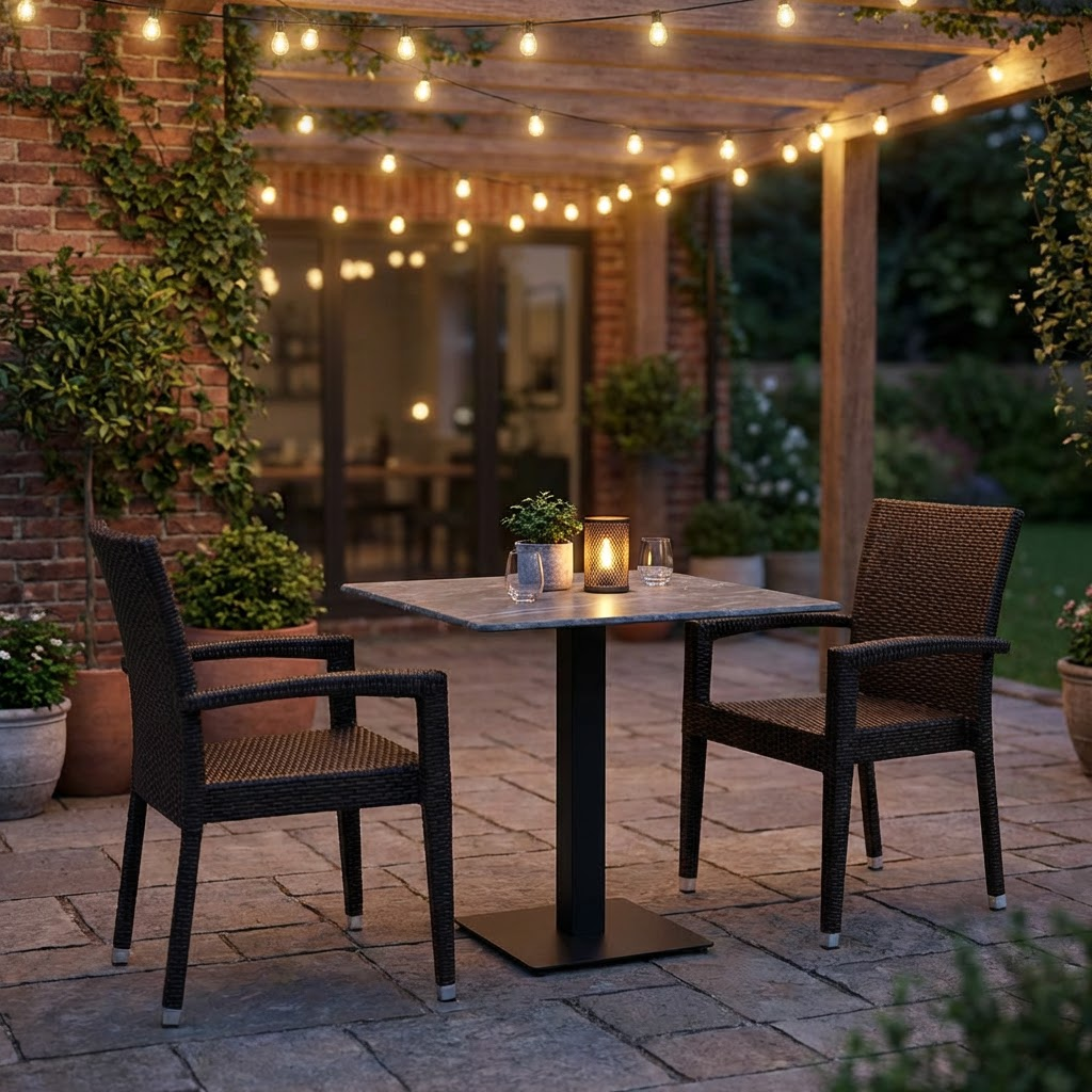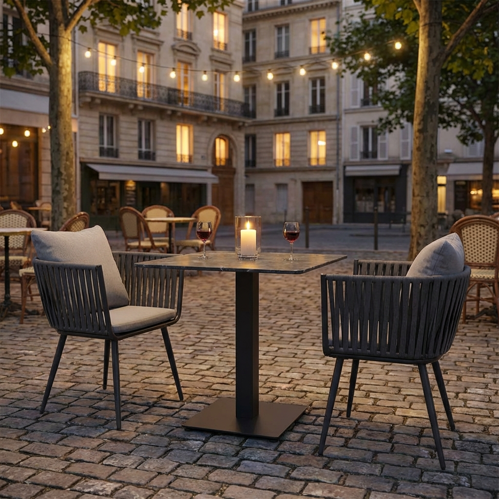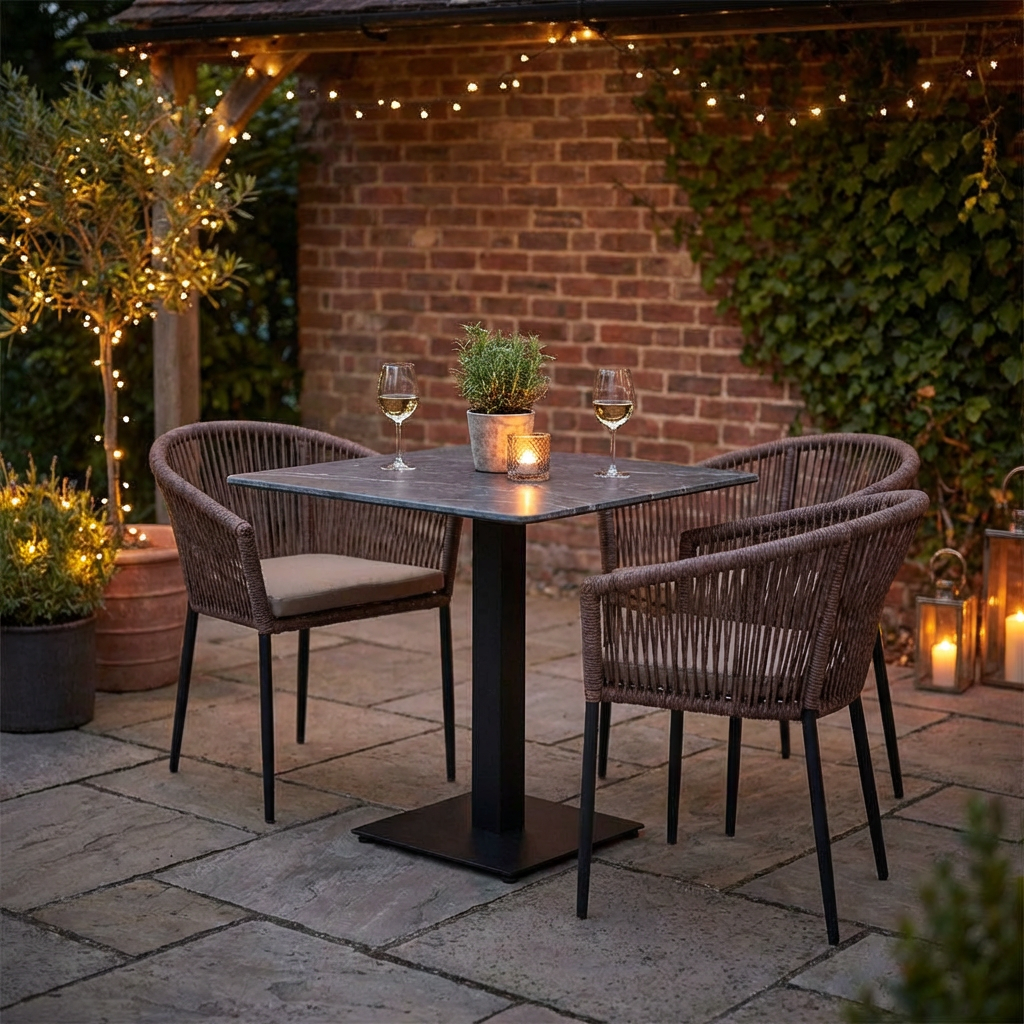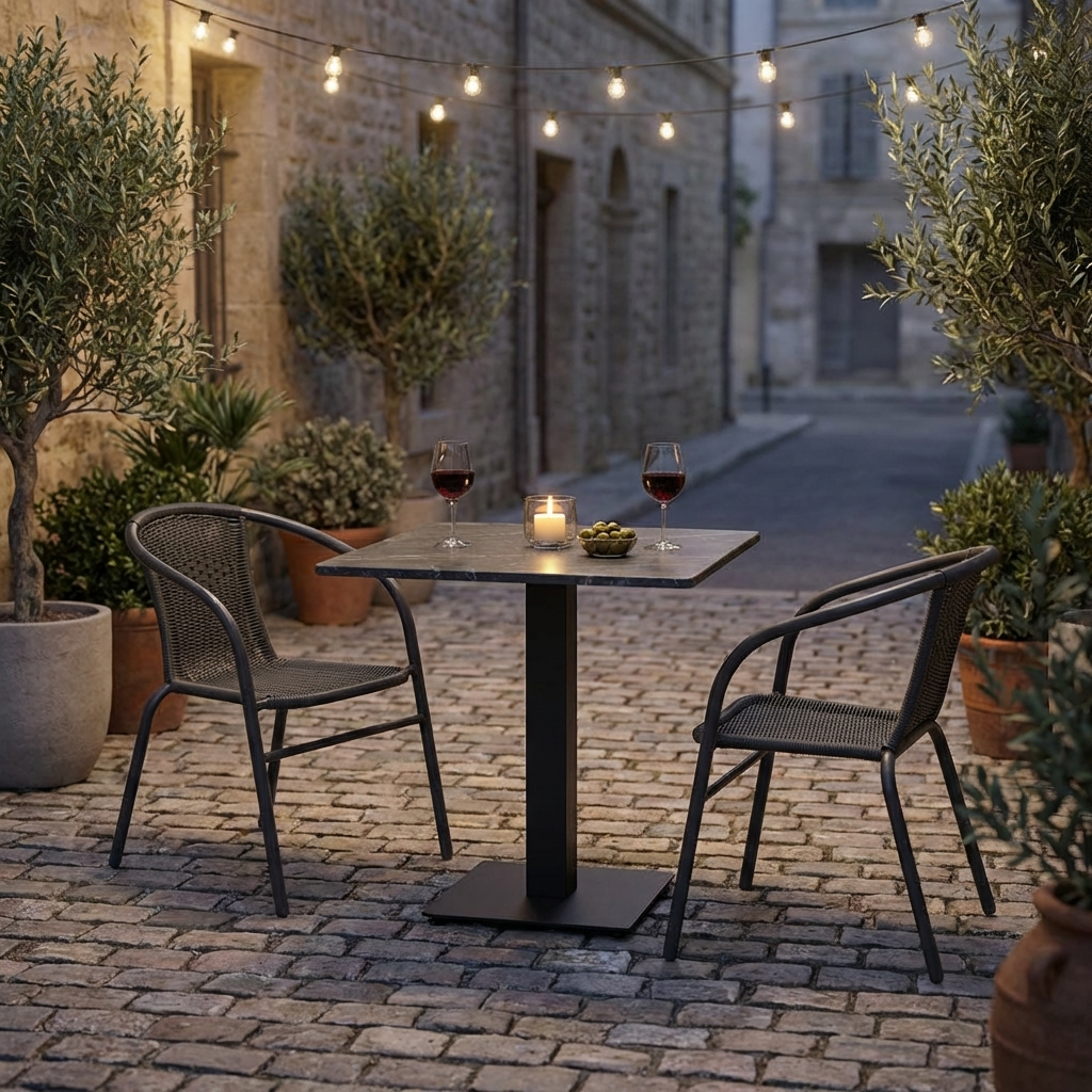 Stół zewnętrzny Catania 60x60cm Szary blat HPL o marmurowym wyglądzie