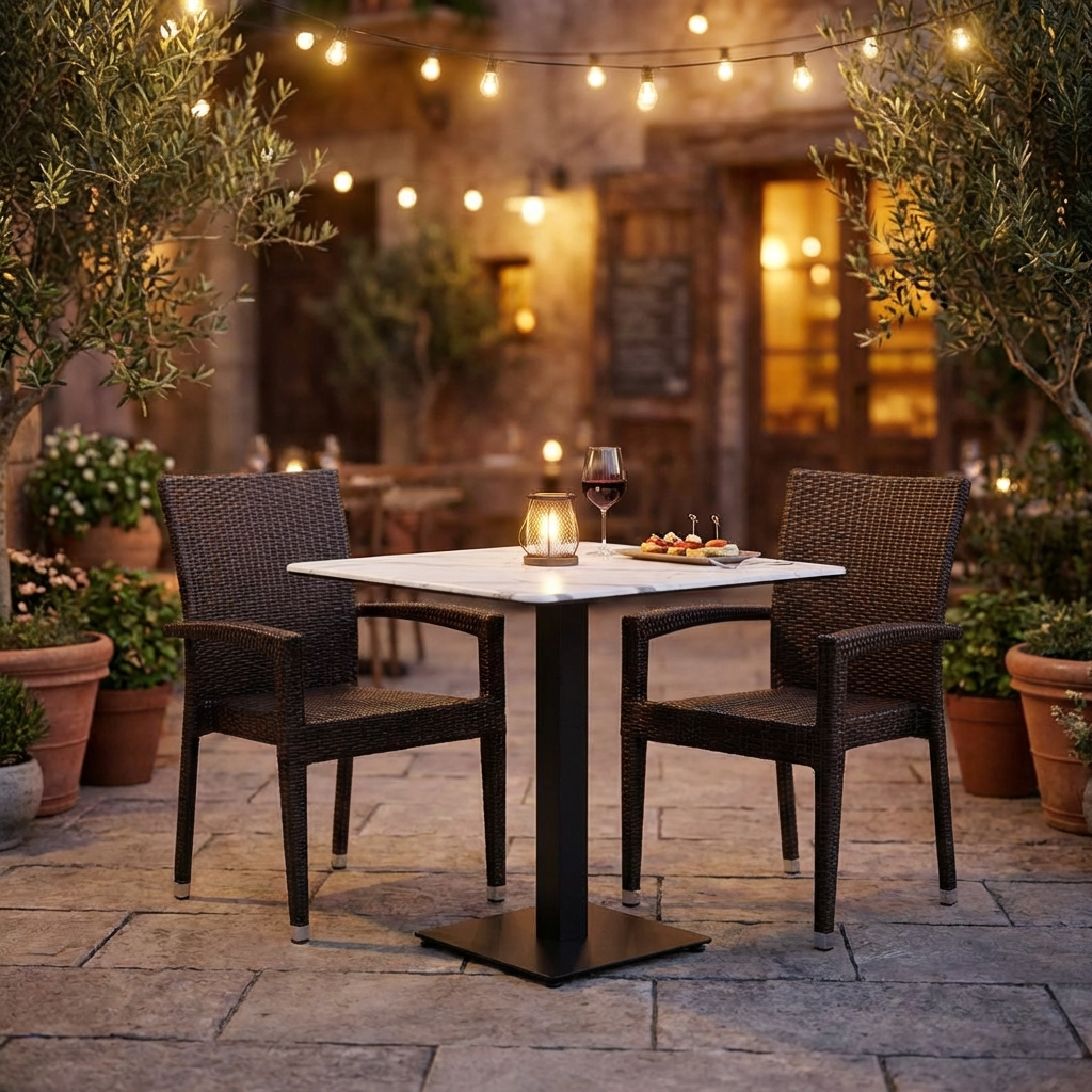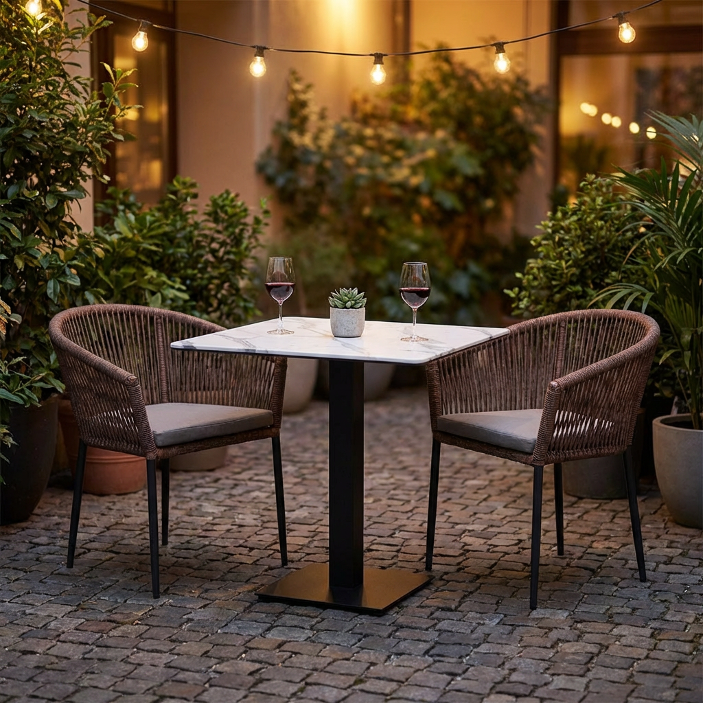 Wybór stołów bistro z laminatem HPL Compact Catania o wymiarach 70x70 cm w kolorze białym o marmurowym wyglądzie do użytku na zewnątrz to naprawdę mądra decyzja. Połączenie solidności, wodoodporności i atrakcyjnego wzornictwa sprawia, że są one cennym dodatkiem do każdego lokalu gastronomicznego. Blaty są nie tylko funkcjonalne i odporne na działanie czynników atmosferycznych, ale także estetyczne i harmonijnie komponują się z różnymi środowiskami. Kompaktowy rozmiar pozwala na wszechstronne zastosowanie i optymalizację dostępnej przestrzeni bez poświęcania stylu. Jest to inwestycja, która uwzględnia zarówno praktyczne potrzeby codziennych operacji, jak i ogólny wygląd przestrzeni gastronomicznej.