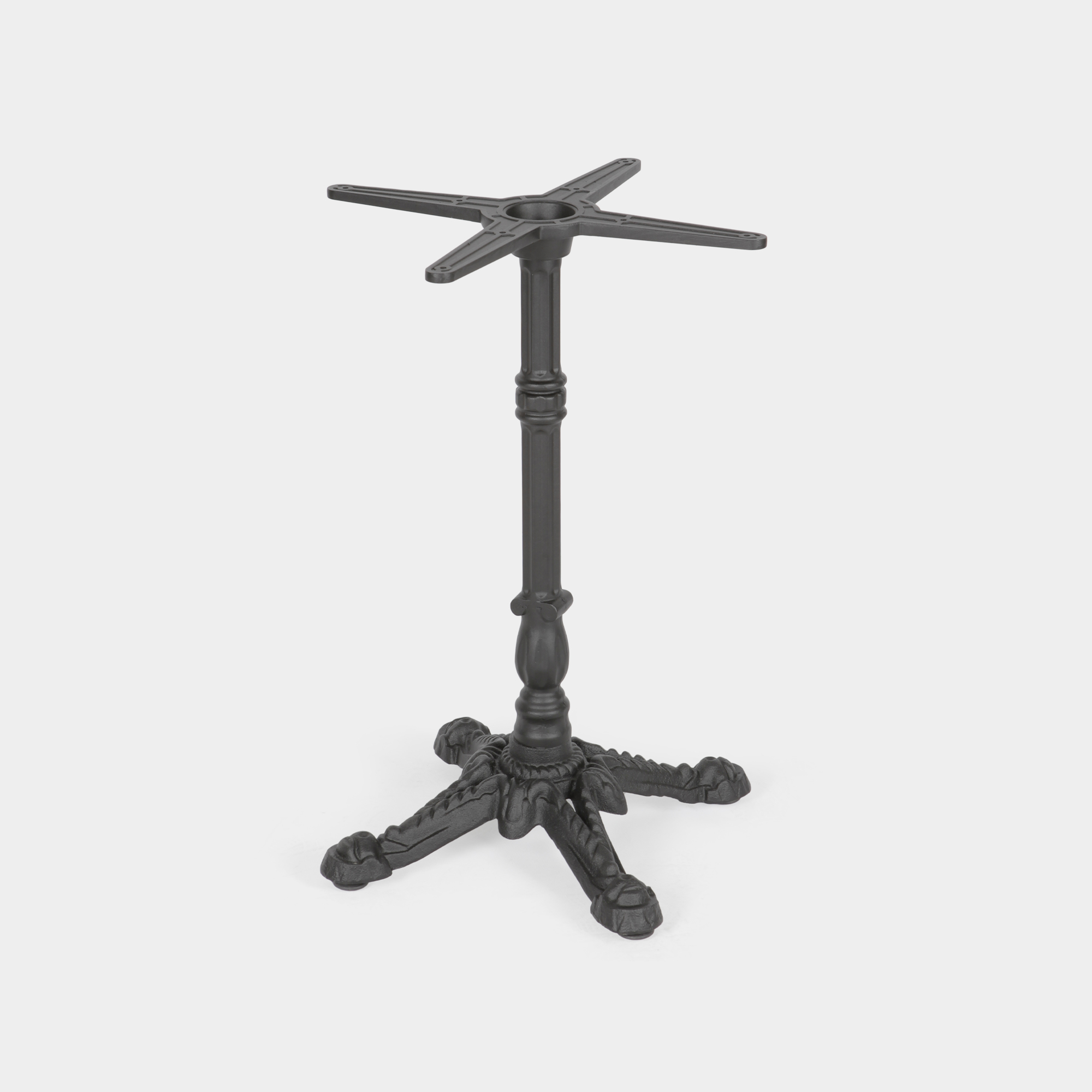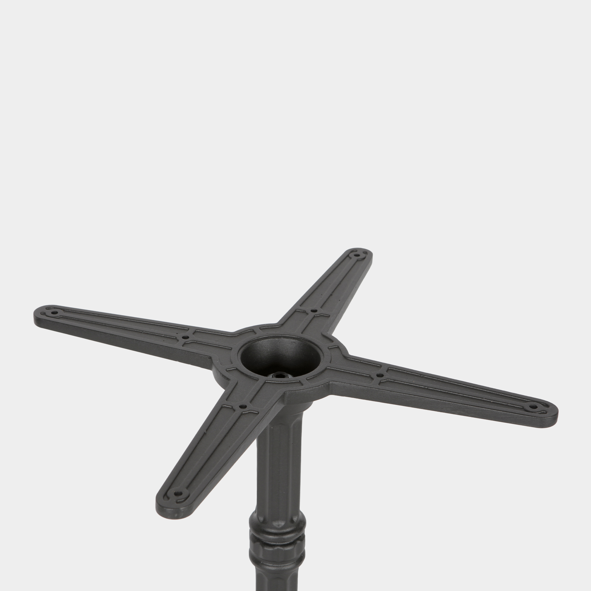 Das Produkt wurde speziell für den Einsatz in gastronomischen Einrichtungen sowie im Innen- und Außenbereich konzipiert. Die Konstruktion besteht aus einem Kreuz- und Säulenelement aus hochdruckgegossenem Aluminium sowie einem Sockel aus Gusseisen. Es bietet eine hohe Maßhaltigkeit, Korrosionsbeständigkeit und ein ausgewogenes Gewicht – ideal für den professionellen Dauereinsatz in Restaurants, Cafés oder Hotellerie. Die Montage erfolgt schnell und unkompliziert.